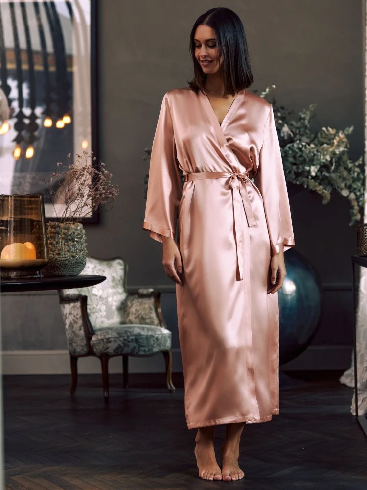 Langer Seidenmorgenmantel Laurian uni Marjolaine