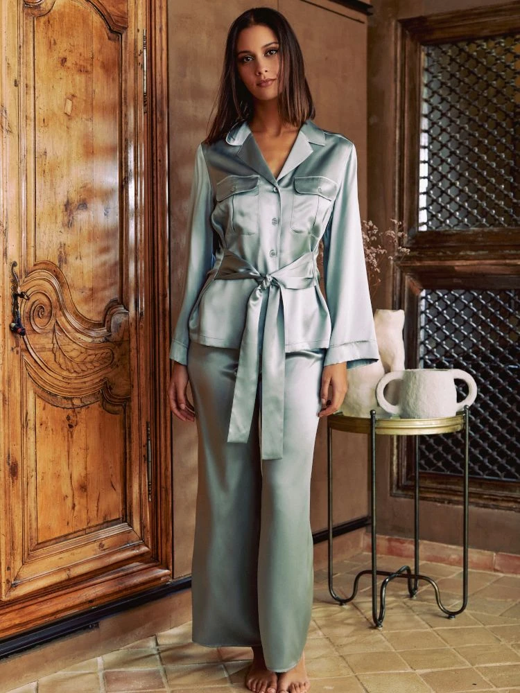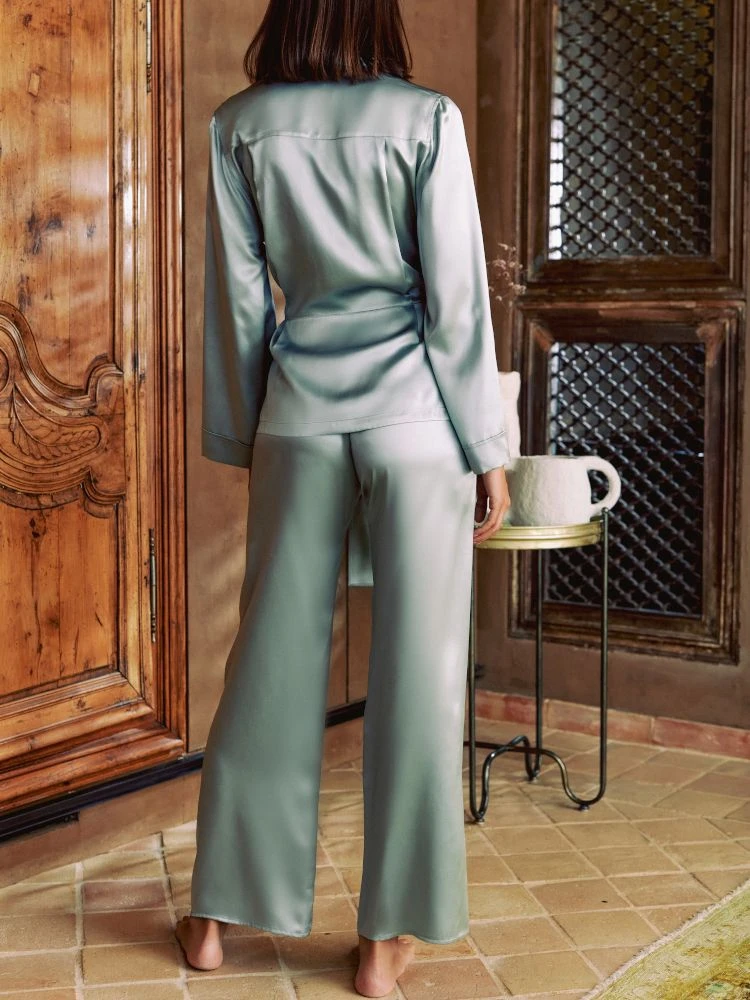 Dieser Seiden-Schlafanzug ist „nur zum Schlafen“ fast zu schade und kann auch als eleganter Hausanzug oder Loungewear getragen werden.