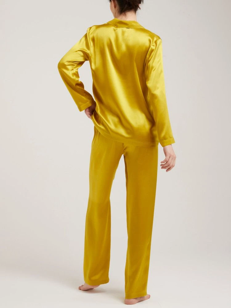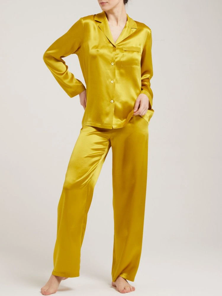 Dieser elegante Seiden-Schlafanzug ist aus hochwertigem Seidensatin (100 % Seide) gefertigt. Der edle Damenpyjama aus echter Seide ist weich, hautsympathisch und mit edlem Glanz. Er ist in klassischen und modischen Uni Farben erhältlich, wie z.B. schwarz, weiß, rot oder gold. Der Seidenpyjama aus der Basic Seidenwäsche Serie des italienischen Nachtwäsche Labels Vivis ist jede Saison in neuen Farben erhältlich und in Basic Farben nachbestellbar.