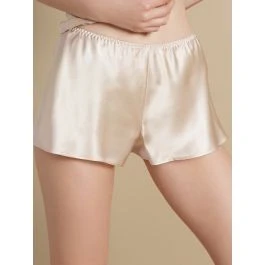 Die Seide Shorts Soie Unie der französischen Edel-Marke Marjolaine ist aus feinem Seidensatin (100% Seide) gefertigt. Die glatte, gerade geschnittene Seiden-Shorts hat einen Gummizugbund.