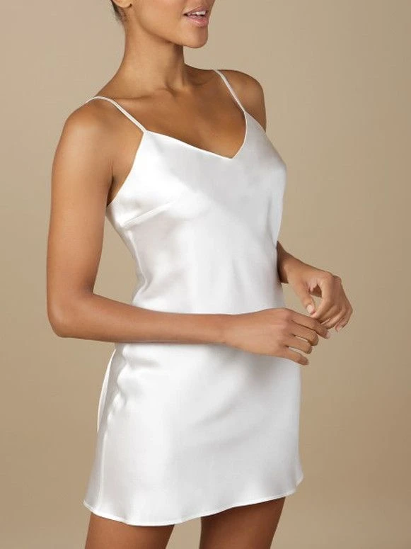 Dieses kurze Seiden-Nachthemd ist ca. 85 cm lang. Es wird in den Größen 34 bis 46 angeboten (deutsche Damengrößen) und ist in den folgenden Farben erhältlich. An der Brust hat das Nachthemd seitlich Abnäher für eine verbesserte Passform.