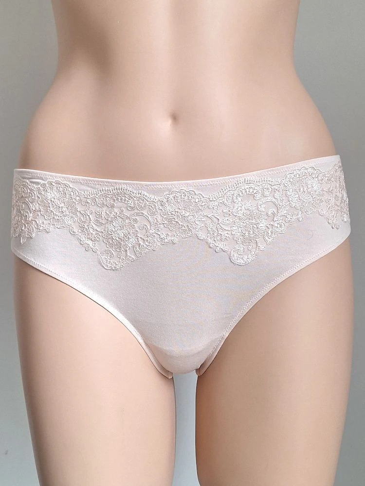 Der Baumwolle Culotte Slip Eterea von Cotton Club ist eine exquisite Baumwolle Damenwäsche der Luxus Klasse. Für dieses Dessous wird ein besonders hochwertiger und elastischer Baumwolle Jersey verwendet, der weich und hautsympathisch ist, in Kombination mit einer bestickten Tüllspitze. Die Teile der Cotone Candy Basic Kollektion sind vielfältig kombinierbar und nachbestellbar. Der Baumwolljersey besteht aus 94% Baumwolle und 6% Elasthan. Der Gehalt von Polyamid und Polyester in der Materialzusammensetzung stammt aus der verarbeiteten Tüllspitze.