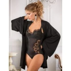Dieser Body mit verstellbaren Trägern ist leicht transparent. Das Oberteil hat ungepaddete Cups mit Bügel und im Schritt ist der Body mit Knöpfen zu öffnen. Dieser feine Body ist eine elegante Unterwäsche. Er ist innen komplett mit einer zusätzlichen Lage Tüll abgefüttert, mit Einsätzen aus bestickter Tüllspitze gestaltet, insgesamt leicht elastisch und in schwarz oder champagner-creme-weiß in den folgenden Größen erhältlich: