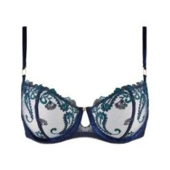 Diese besondere Reizwäsche ist in der Farbe Twilight, einem eleganten Nachtblau mit Smaragdgrünen Elemente, erhältlich und gibt es in den Größen 70 bis 85 B, C und D.