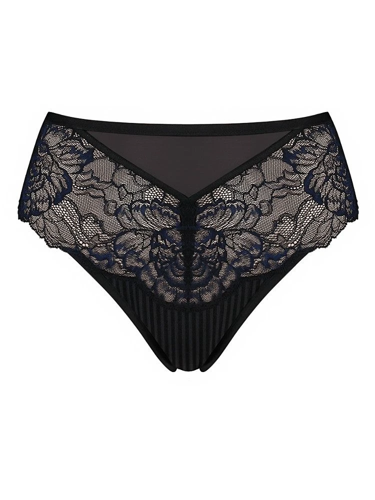 Dieser atemberaubende hohe Slip ist aus Spitze und Netztüll gefertigt. Die filigranen, breiten Spitzenabschlüsse umschmeicheln den Körper. Die hohe Schnittform bietet einen leicht shapenden Effekt. Der Innenzwickel besteht aus Baumwolljersey für ein angenehmes Tragegefühl.