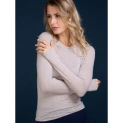 Das Langarm Shirt besteht aus einem super weichen und hautsympathischen Jersey aus 85% Modal, 9% Kaschmir und 6% Elasthan. Dieses edle Shirt hat lange Ärmel, eine Gesamtlänge von ca. 60 cm und einen runden Ausschnitt.