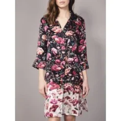 Luxuriöses SeidenSleepshirt Roses mit 3/4-Ärmeln. Diese edle Seiden Sleepshirt ist aus bedrucktem, feinem Seidensatin gefertigt und kann als Schlafshirt oder Homewear getragen werden. Das Sleepshirt ist vorne knöpfbar und hat eine Länge von ca. 95 cm. Der bequeme Schnitt und die halblangen Ärmel machen dieses Seiden- Sleepshirt zu einem schicken und hautsympathischen Nachthemd für das ganze Jahr.