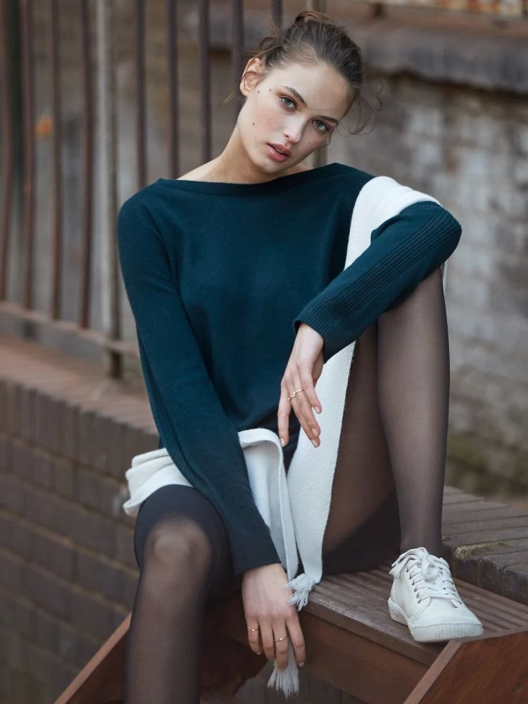 Der Strick Long-Pullover Mandy 96 von Pain de Sucre Suggest ist aus einem traumhaften Wintermaterial gefertigt. Der länger geschnittene Strick-Pullover besteht aus einer Mischung von Wolle und Viscose mit dem Plus an Kaschmir. Er hat einen runden Ausschnitt, lange Raglan-Ärmel und ist in den Farben petrol-grün oder kiesel-grau erhältlich. Aus dieser Kollektion gibt es separat erhältlich noch weitere Teile, die sich wunderbar kombinieren lassen.
