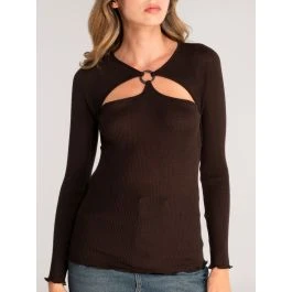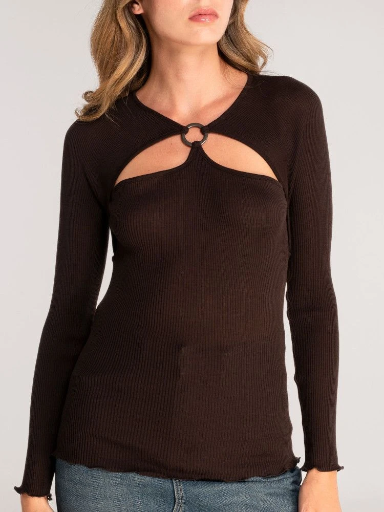 Schokobraunes Wole-Seide Langarm-Shirt von Oscalito