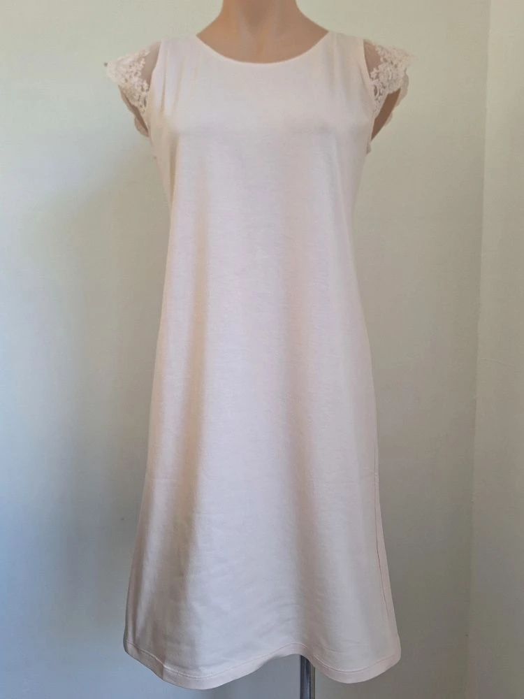 Das Nachtkleid aus der Basic Serie „Cotone Candy“ des italienischen Wäscheherstellers hat kurze Ärmel aus Spitze.