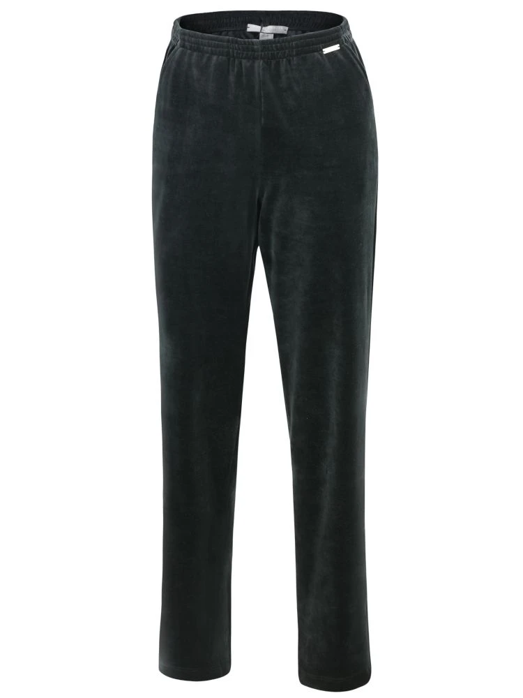 Wärmender Hausanzug Sky Lodge mit langen Ärmeln aus einem angenehmen Baumwolle-Nicki. Dieser bequeme Hausanzug ist aus einem Baumwollmix (77% Baumwolle und 23% Polyester) und kann als Haus- oder Freizeitkleidung getragen werden. Die Jacke hat einen Reißverschluss und ist ca. 65 cm lang. Sie hat zwei Taschen und ist mit Kunstleder verziert. Die Hose hat einen Gummibund und Taschen.