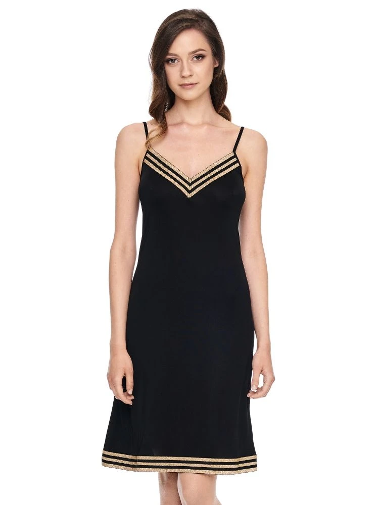 Nighty Tessa schwarz gold von Gattina gewirkt mit Seide