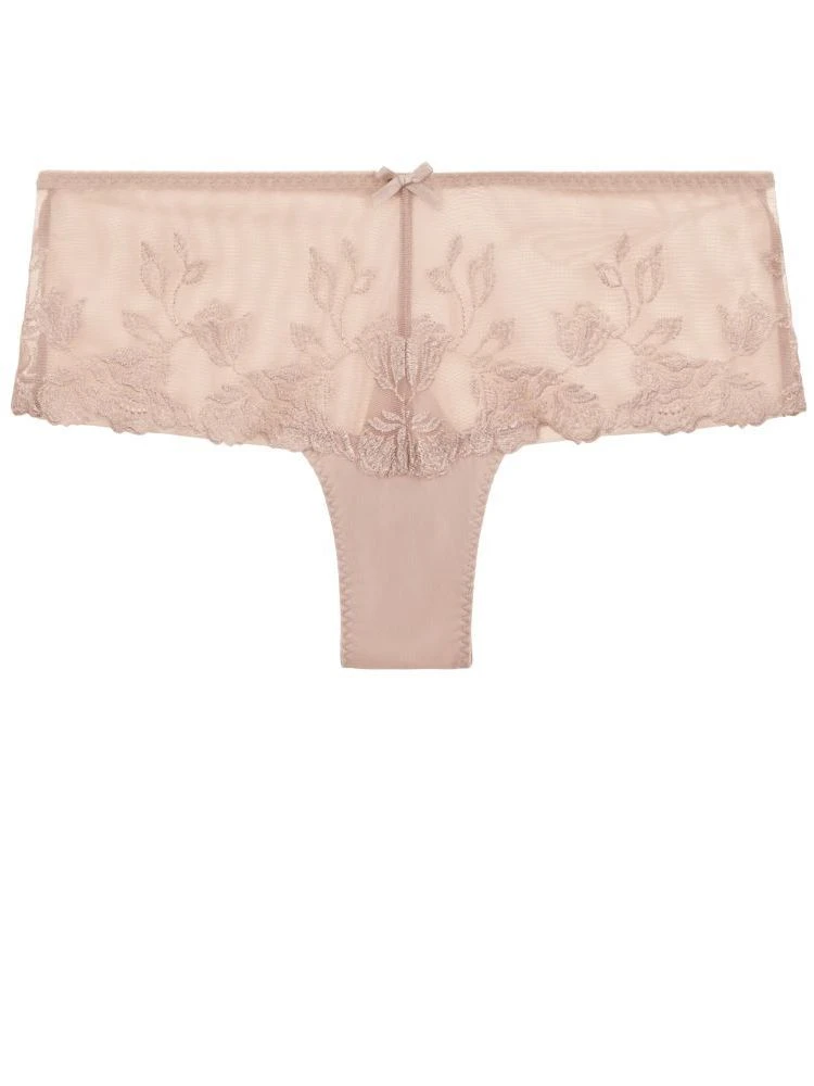 Der St. Tropez Slip ist aus Tüll und bestickter Tüllspitze gefertigt. Der Tüll ist hinten in Futteralverarbeitung verwendet für besonders flache Kanten. Der Slip ist semitransparent und hat einen Innenzwickel aus Baumwolljersey.