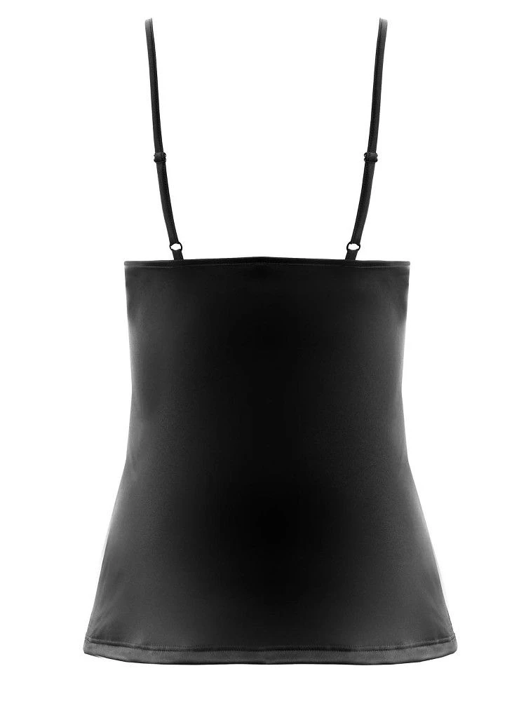 Dieses Top ist komplett aus glänzendem, elastischem Satin gefertigt und hat verstellbare Spaghetti-Träger. Am runden Ausschnitt vorne mittig ist der Escora Schlüssel als kleiner goldener Schmuckanhänger angebracht. Dieses Top aus Satin ist weich und anschmiegsam und kann mit den separat erhältlichen Spitzenshirts von Escora kombiniert werden, welche es in den gleichen Farben gibt. Die Gesamtlänge ist ca. 60 cm.