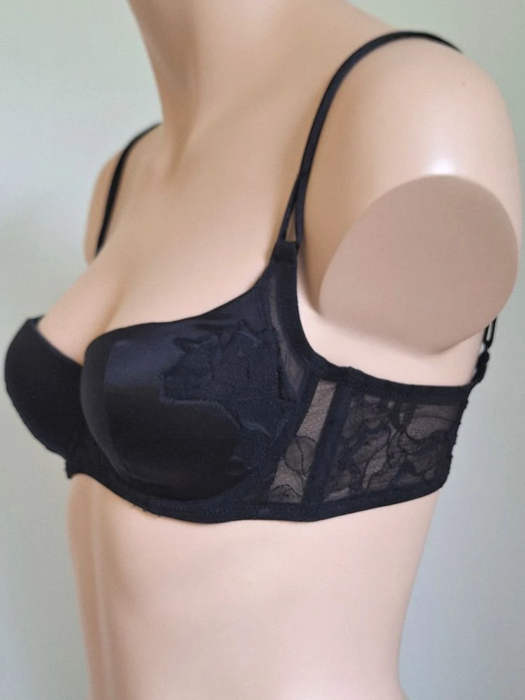 Die Rückseite ist aus Spitze gefertigt und mit weichem, elastischem Mesh-Gewebe unterlegt. Die Träger aus Seide sind längenverstellbar.Der BH ist mit B, C oder D-Cup erhältlich.