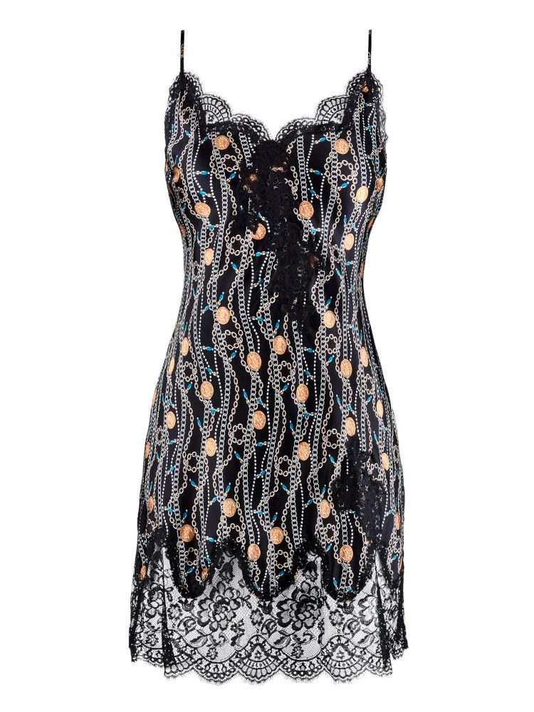 goldenes Kettenmuster auf schwarz mit schwarzer Spitze