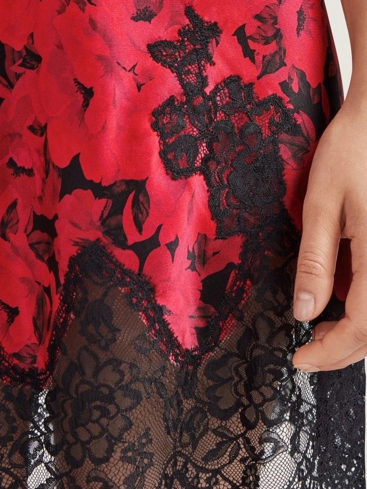 rotes Blumenmuster mit schwarzer Spitze