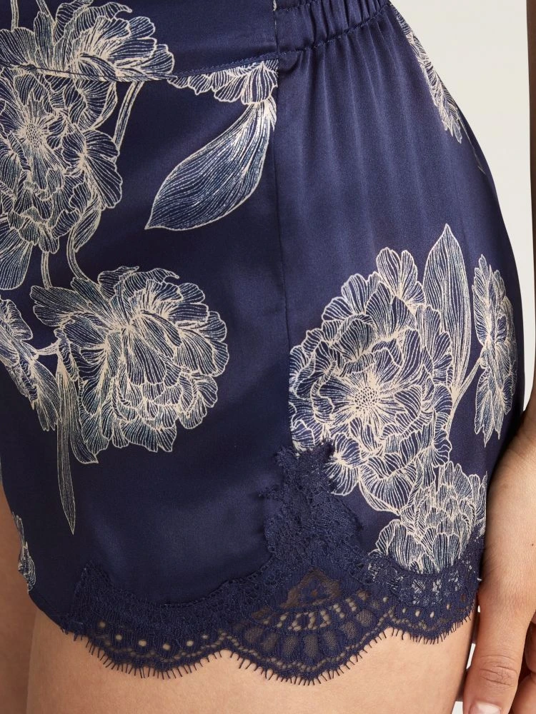 Die Seiden-Shorts Toi Mon Amour von Aubade ist eine luxuriöse Seidenwäsche mit verführerischem Musterdruck. Die edle Seidenshorts besteht aus glänzendem Seidensatin (100% Seide) und exquisiter Blüten-Spitze.