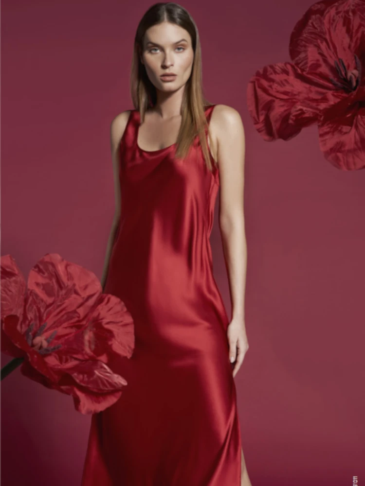 Rotes Seidennachthemd / Seidenkleid Glitter Seduction von Luna di Seta