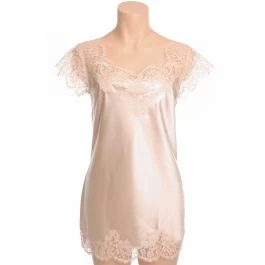 Dieses kurze Seiden-Negligé ist ca. 80 cm lang und hat kurze Ärmel. Es kann auch als Bluse oder Oberteil getragen werden.