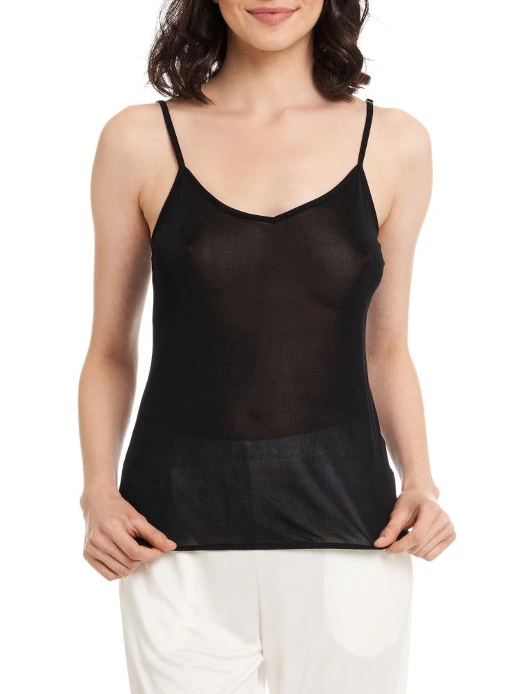 Dieses Spaghetti-Träger Top aus reiner Seide hat verstellbare feine Spaghetti- Träger. Die Länge ist ca. 60 cm. Es kann als Top oder Unterhemd verwendet werden – bitte beachten Sie, dass diese Materialqualität nicht blickdicht ist!