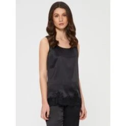 Das Camisole Seidentop mit breiten Trägern von Chiara Fiorini besteht aus Seide in einer elastisch gewebten Qualität (96% Seide, 4% Elasthan). Es ist Made in Italy und in den Größen 34 bis 52 erhältlich. Dieses Camisole Seidentop ist ca. 65 cm lang und die Träger sind breiter geschnitten. Der untere Saum ist umlaufend mit einem ca. 5 cm breiten Spitzensaum besetzt.