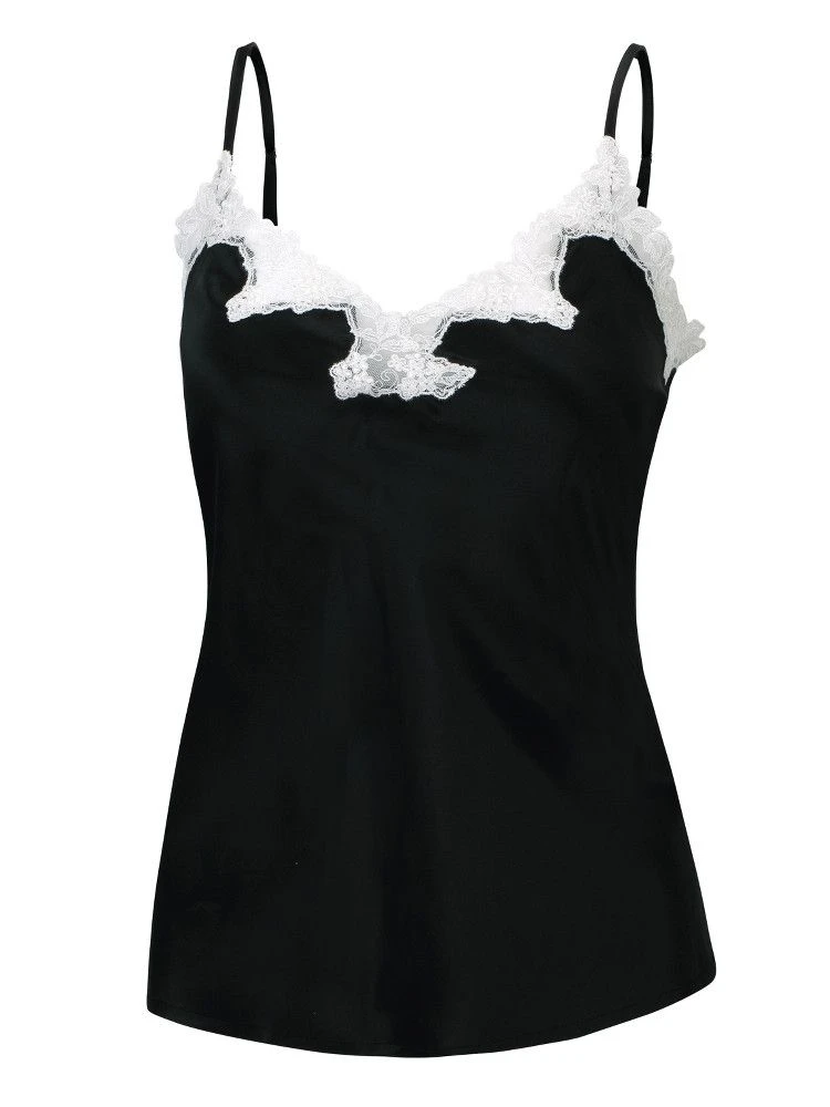 Das Top ist ca. 60 cm lang und mit verstellbaren Spaghettiträgern ausgestattet. Es ist eine verführerische Seidenwäsche und als Oberbekleidung oder Schlafwäsche verwendbar. Das Grundmaterial dieser Serie ist der glänzende Seidensatin, den Eva B. Bitzer auch für die klassische Basis-Kollektion verwendet. So sind die Wäscheteile der Satin & Lace Serie mit den einfarbig schwarzen oder naturweißen Teilen der Klassik Kollektion kombinier- und ergänzbar.
