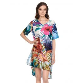 Das Sleepshirt mit kurzen Ärmeln von Gattina besteht aus fein glänzendem Satin (65% Baumwolle, 35% Seide). Es hat einen Druck in weiß, blau und fuchsia und ist in den Größen 36 bis 48 (deutsche Damenkonfektionsgrößen) erhältlich. Ausverkaufte Größen sind hier nicht nachbestellbar. Es hat kurze Ärmel, seitliche Schlitze im Saum und eine Gesamtlänge von ca. 95 cm. Der Schnitt ist assymetrisch – das Shirt ist vorne ca. 10 cm kürzer als hinten. Der klassische Schnitt, der kombinationsstarke Blüten Druck und die bequeme Passform machen aus diesem Sleepshirt einen gemütlichen Begleiter für zu Hause oder auf Reisen. Es kann als Nachthemd oder leichtes Sommer- oder Strandkleid getragen werden.
