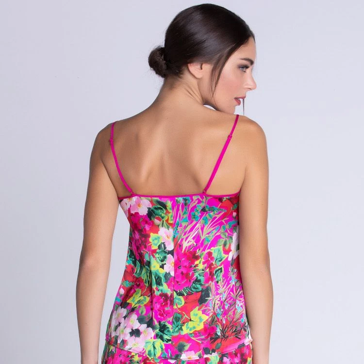 Das Seidentop Envolee de Fleurs von Lise Charmel ist in den deutschen Größen 36 bis 44 in fuchsia mit Blumenmuster erhältlich. Dieses hübsche Seidentop ist aus der modischen Kollektion Envolee de Fleurs und deswegen sind ausverkaufte Größen nicht nachbestellbar. Zu diesem Seidentop gibt es eine passende Shorts oder Pyjamahose, welche seperat bei uns im Shop erhalten werden können.