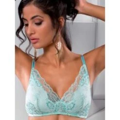 Dieser BH hat elastische, längenverstellbare Träger. Er ist ohne ausgewiesene Cup-Größen in der Farbe zarttürkis (acquamarina) erhältlich:
