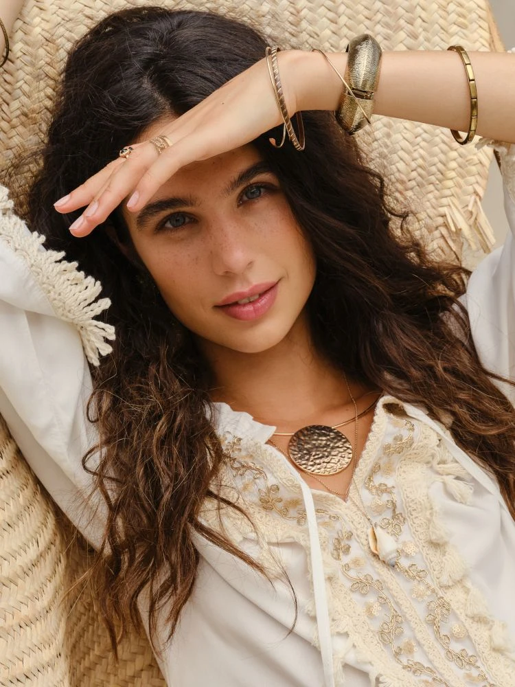 Die Tunika ist ca. 90 cm lang und kann als Strandkleid, Sommerkleid oder längeres Oberteil über Hosen getragen werden. Da das feine Material leicht durchsichtig ist, sollte diese Tunika mit geeigneter Unterkleidung kombiniert werden.