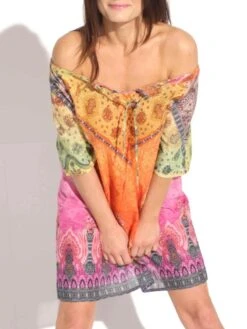 Das kurze Strandkleid mit kurzen Ärmeln von Chiara Fiorini besteht aus Viscose in einer hautsympathischen, elastischen Jersey-Qualität (96% Viscose, 4% Elasthan). Es ist Made in Italy und in in den Größen 36 bis 46 erhältlich. Ausverkaufte Größen sind hier nicht nachbestellbar. Dieses Strandkleid ist ca. 90 cm lang, mit rundem Ausschnitt. Das kurze Kleid hat kurze Ärmel und ist geradlinig geschnitten. Mittig wird es mit einem angenähten Gürtel tailliert getragen.