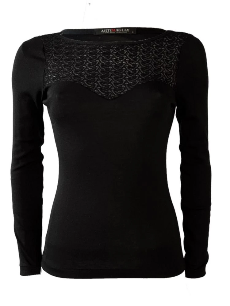 Spitze Merinowolle-Seide Langarm-Shirt schwarz von Artimaglia