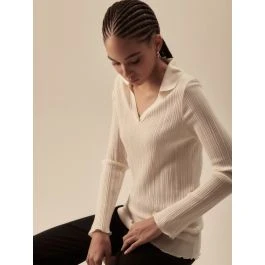 Naturweisser Wolle-Seide Langarm-Shirt von Oscalito